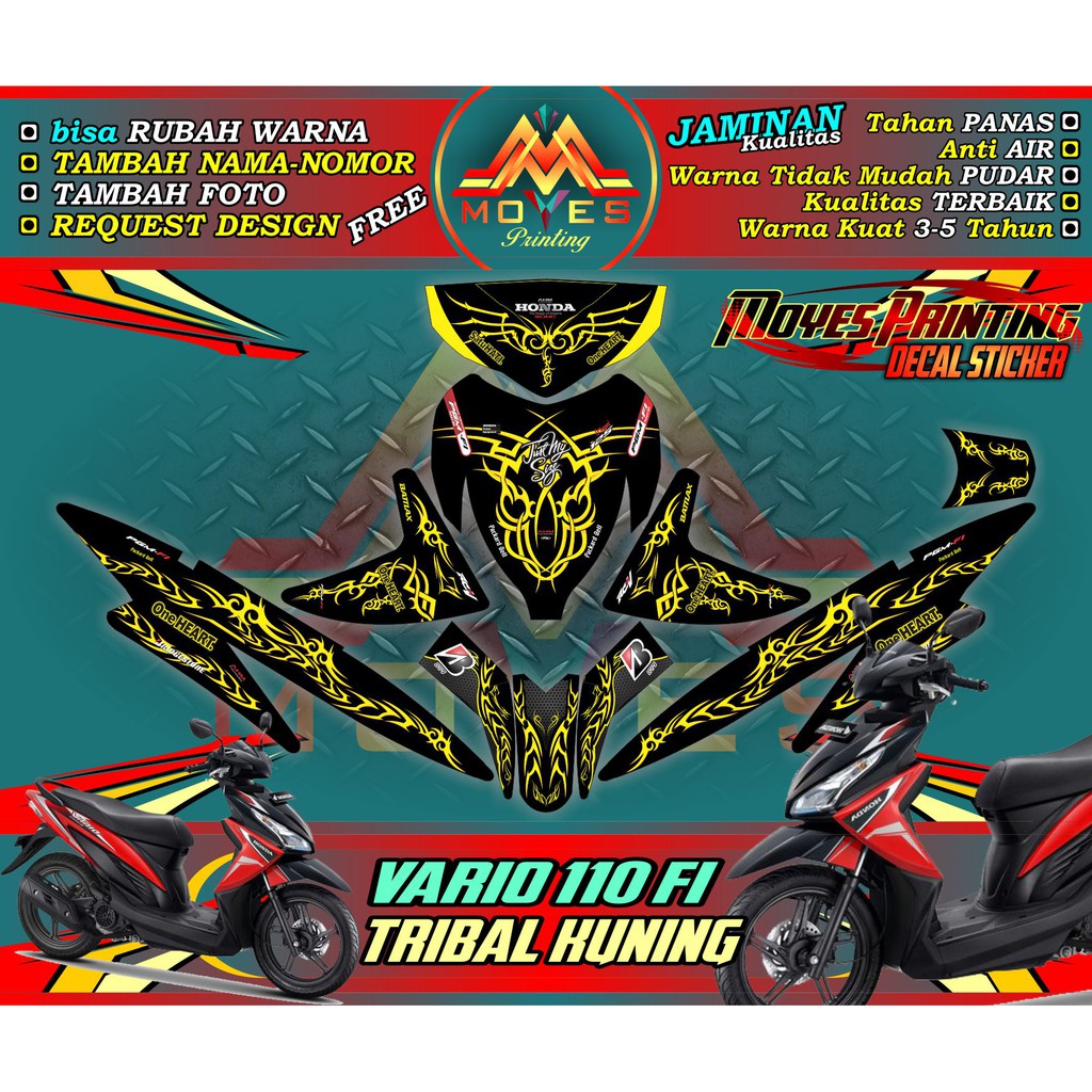 Sticker Decal Full Body Honda Vario 110 Fi Decal Sticker Motor Vario 110 Fi Motif Tribal Kuning Shopee Indonesia